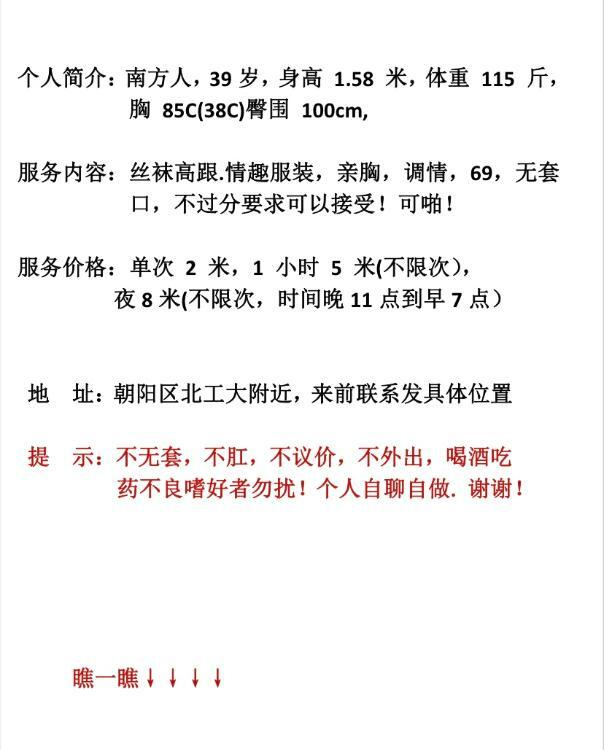 详细介绍:性价比非常高,姐姐很热情,玩的开,服务也好,尤其是嘴上功夫一流,还有角色扮演 泄火的好地方 很有性价比 姐姐比较瘦插进去很紧 只要不过分的要求基本都可以满足你